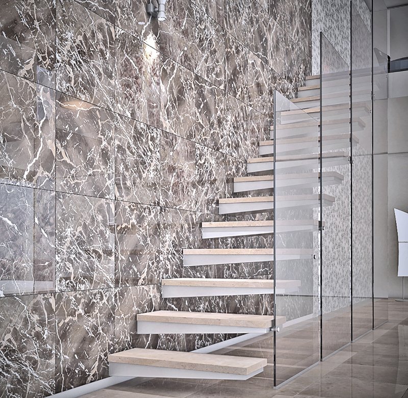 Amazing grey marble with depth. Lovely warm grey with light and dark natural markings and some brown.